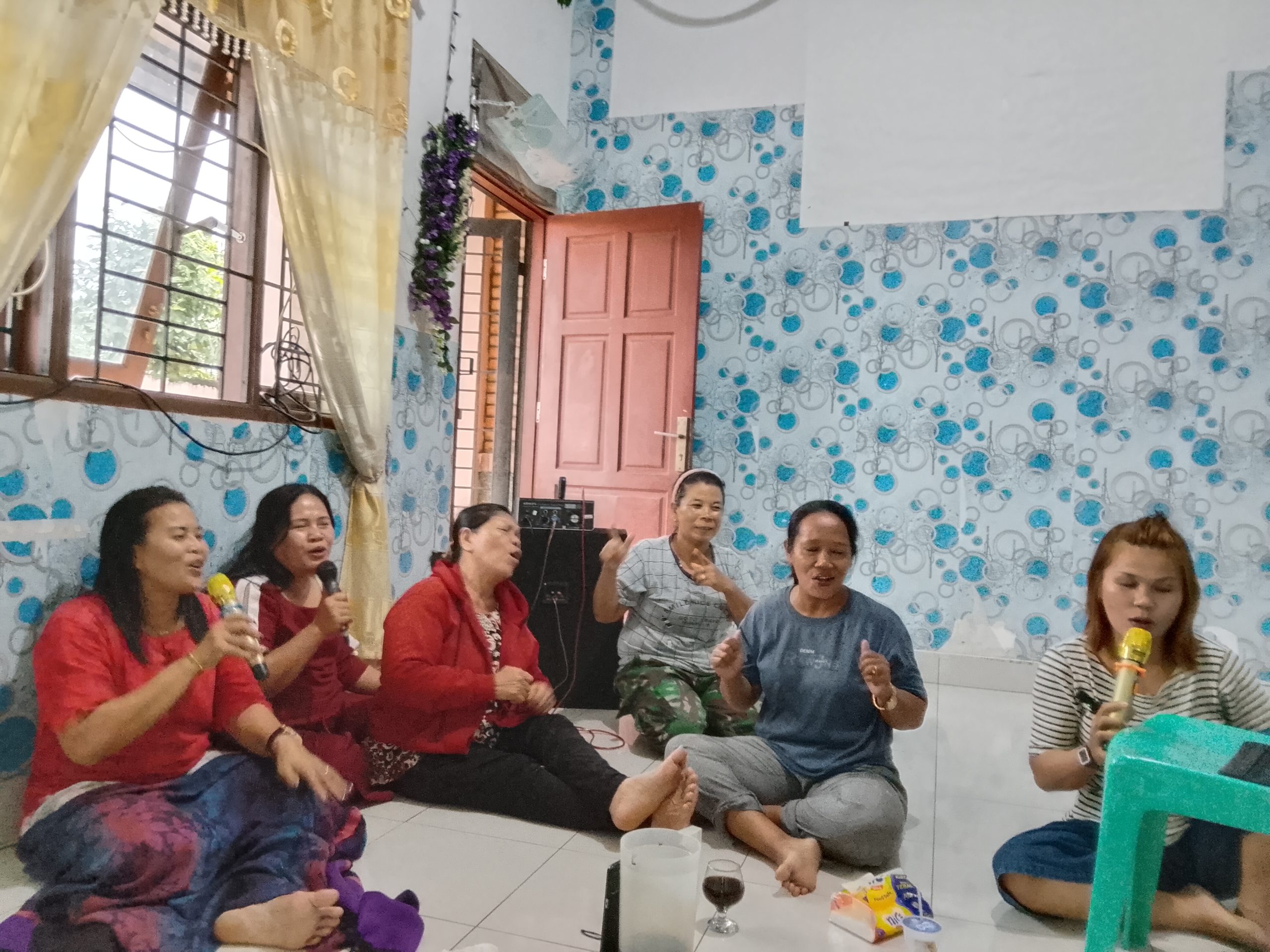 SumutPost.Com-Medan, Dalam mengisi waktu luang para Ibu Pendeta ini menyempatkan dan mengasyikkan diri dengan Karaokean sambil kadang bersendagurau sambil menikmati Kopi dan gorengan di GKMI Marindal. Mereka menyebut dirinya wanita Sion dan sangat menikmati suasana ini ditengah guyuran hujan mulai jam 3 sore. Banyak lagu lawas yang dinyanyikan secara bersama-sama sambil bergurau, sementara Supriadi asik menikmati kopi, sambil memperhatikan keperluan para ibu pendeta ini, hadir dalam suasana penuh sukacita ini, Pdt Erika Sianturi Ibu Bishop Dikson Panjaitan, Pdt Ida Royani Sirait, Pdt Erika Simanungkalit, Pdt Riris Simamora, Pdt Loinpas Sirait, Pdt Yohana Pakpahan.